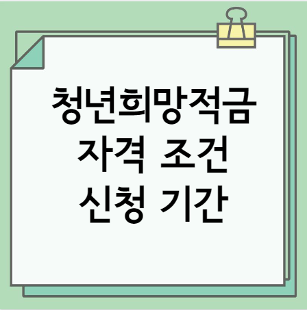 청년희망적금은 청년들이 목돈을 마련하고 미래를 준비하는 데 큰 도움이 되는 정부 지원 상품입니다. 자격 조건과 신청 기간 등을 꼼꼼하게 확인하고, 미래를 위한 현명한 선택을 하시기 바랍니다.